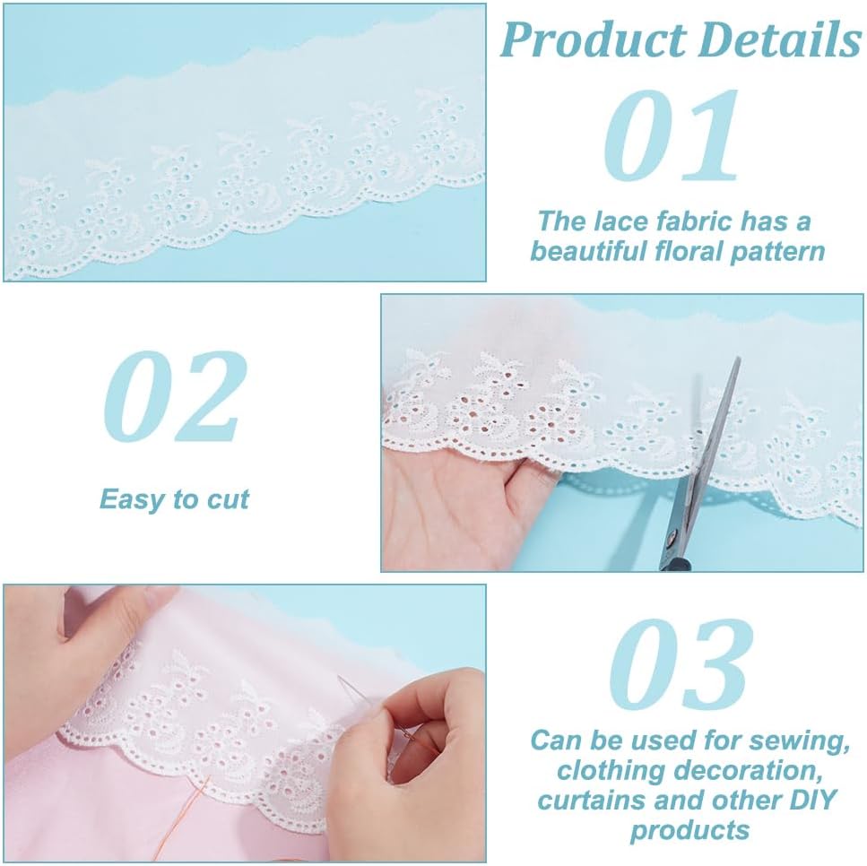 Wide Applications:This versatile lace trim can be used for various purposes,including embellishing bridal gowns,bridal headpieces,flower arrangements,clothing,scrapbooking,Halloween cosplay makeup,hair bun making,card decoration,floral arrangements,packaging,and more.