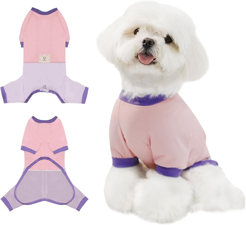 【Multi-Function Dog Pjs】Giving every furry buddy thoughtful protection. It can be used as a recovery suit to effectively prevent postoperative licking, biting, and chewing, providing a cover for dogs that have skin issue. These cute dog clothes help limit excess shed hair and pets dander to help keep it off your furniture and bedding. It can be used as daily indoor pajamas or as outdoor clothing, wihch also can prevent pet colds very well when the air conditioner is turned on in summer.