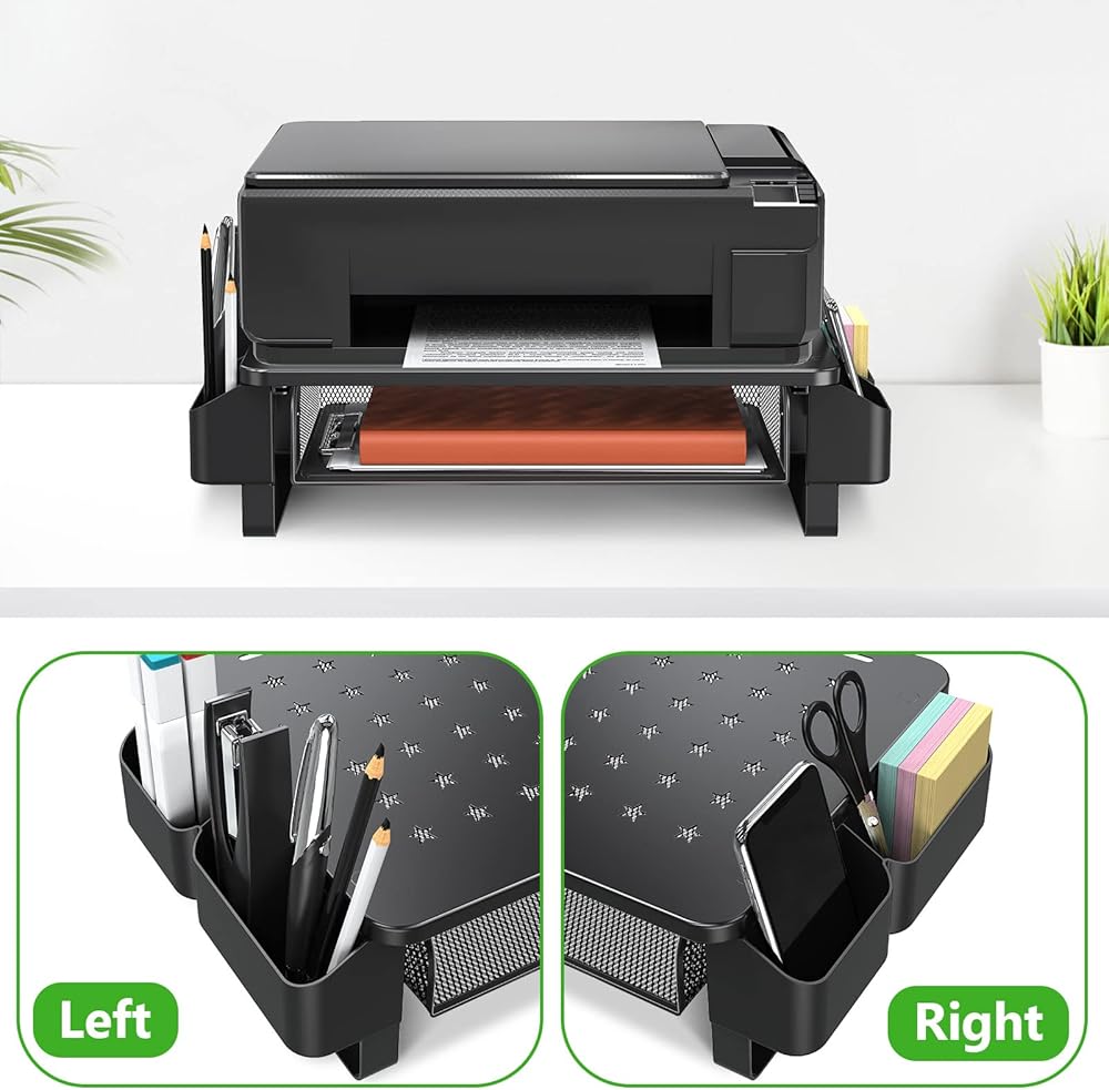 Get Organized with the Metal Drawer&Foldable Phone Holder- Make full use of the space under the stand riser platform to keep your workstation clean and organized. The sliding drawer is perfect for US letter-size paper,and the foldable phone holder on both sides can help you work more efficiently.