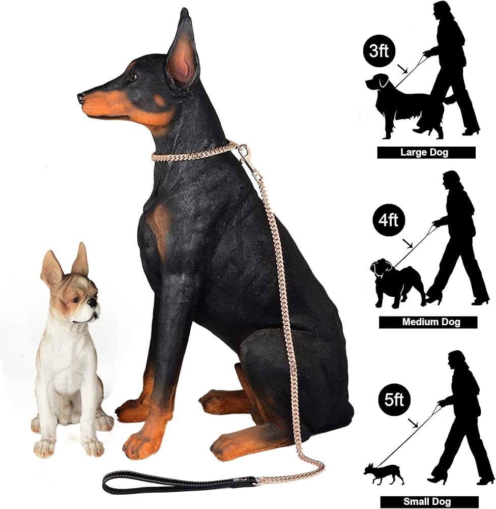 Who Needs this Leash? : Do you have a dog that likes to pull or chew? If yes, then this metal leash is perfect! The luxurious Miami Cuban link chain leash looks cool on both male and female dogs. It's designed for small and medium and large active breed dogs like Cavapoo, Jack Russell, Rottweilers, Pitbulls, American Bullys, German Shepherds, Huskys, Newfoundlands, Belgian Malinois, Saint Bernards and English Bulldogs it can handle the rough breeds.
