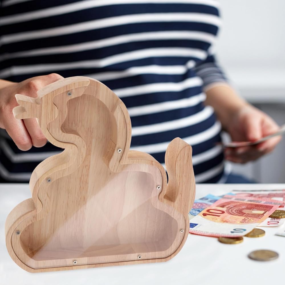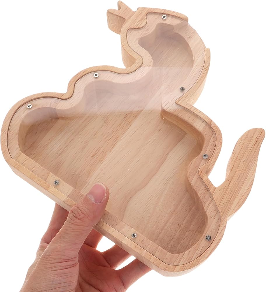 🐍🐍🐍 wooden clear dragon piggy bank for kids, unbreakable moneys box chinese zodiac money container mascot dragon statues for home office decor this charming animal-themed design is sure to captivate childrens imaginations, making saving money a fun and engaging activity.