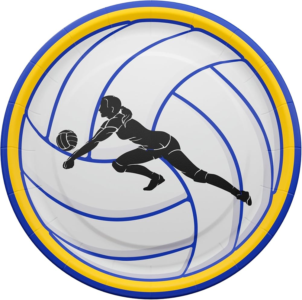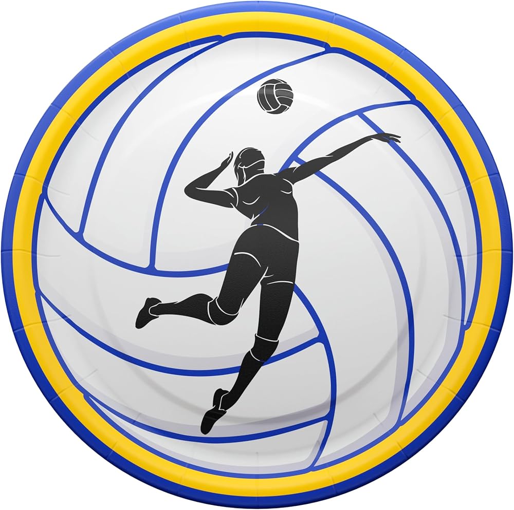 🏐 VOLLEYBALL PLATES AND NAPKINS - Includes (16) 9" Dinner Plates, (16) 7" Dessert Plates, and (20) Napkins, perfect for your volleyball or sports-themed party.