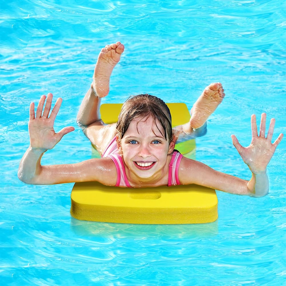 Proper Size: the water solid saddle floats is measured about 31.5 x 15.7 x 1.3 inch, appropriate size for swimmers; And smaller kids can hold the handles for more comfortable swimming in the water