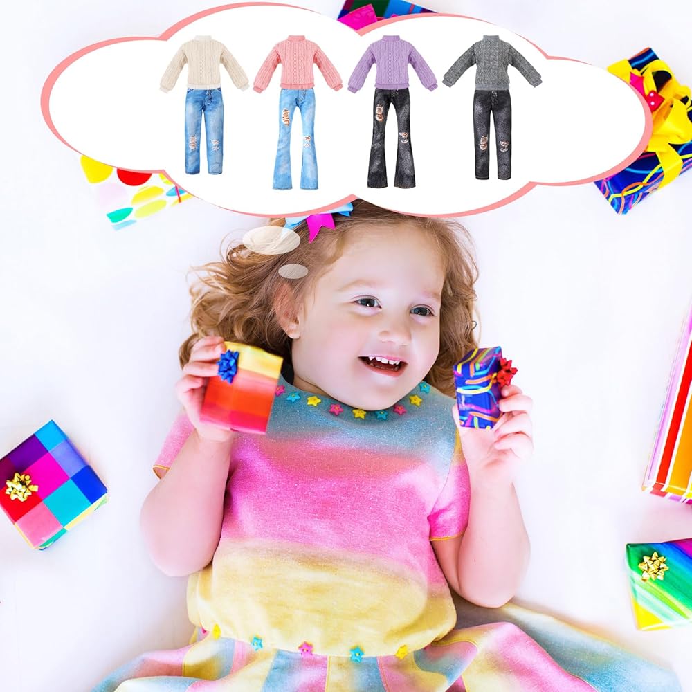 Sufficient quantity: you will receive 8 pieces of doll clothes in different colors, including 4 tops and 4 pants; The delicate design makes your doll more attractive, the quantity is enough to meet your different role playing and multiple doll needs, bring you a lot of fun; Note: the dolls are not included in the package