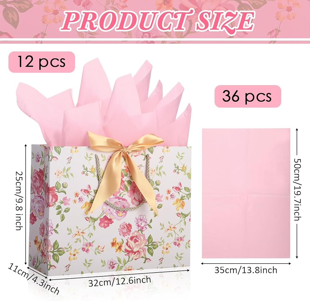 The elegant gift bag set features spring-like floral patterns and delicate bow ribbons. The bright and cheerful gift bags are an excellent choice for thanking women, mothers, friends and other important staff