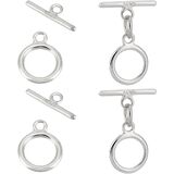 BENECREAT 4 Sets 925 Sterling Silver Round Toggle Clasp T-Bar Closure, 12.5x4x1mm Jewelry Findings Toggle Connectors for Necklace Bracelet and DIY Jewelry Making