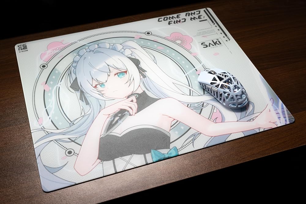 D-Glow Ying x SAKI Glass Gaming Mouse Pad, Precision Control, XL Size 400x500mm, Anime Style, Durable 3mm Thickness Tempered Glass with Arm Sleeve and Mouse Pad Feet