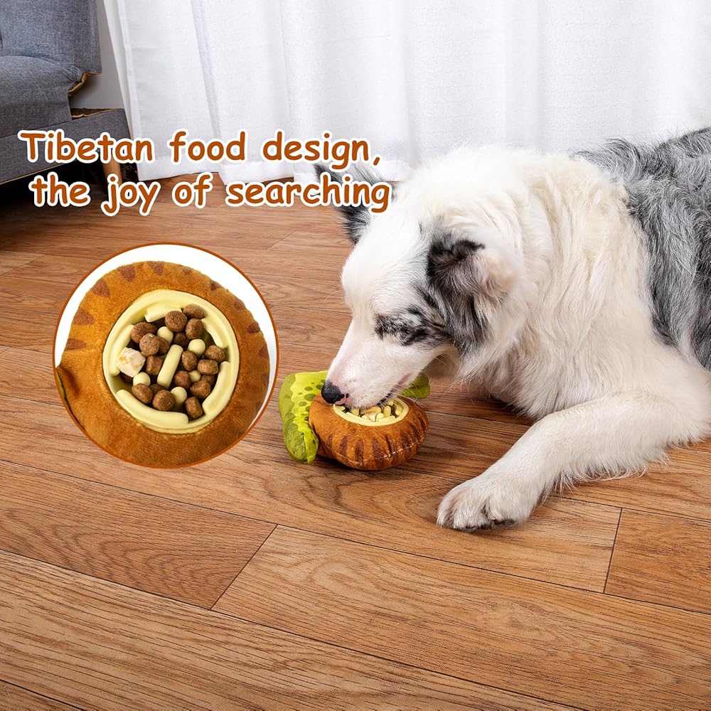 Multifunctional Fun and Interaction - This stuffed dog toy with a squeaker will attract dog's interest, making them excited to play. The middle part design a slow-feeding bowl to encourages chewing, helps your dog release emotions, reduce anxiety. These interactive activities strengthen the bond between dogs and their owners while providing daily training and entertainment