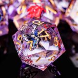 Butterfly DND Dice Purple Liquid Core Dice Set with Metal Box, Handmade Sharp Edge D and D Polyhedral Dice for use with D&D Role Playing Game, D20 D12 D10 D8 D6