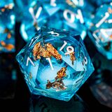 Liquid Core Dice: At the heart of resin dice lies a transparent sphere, filled with shimmering liquid sand that moves gracefully with every roll. This unique design adds a mesmerizing visual element to your game experience.