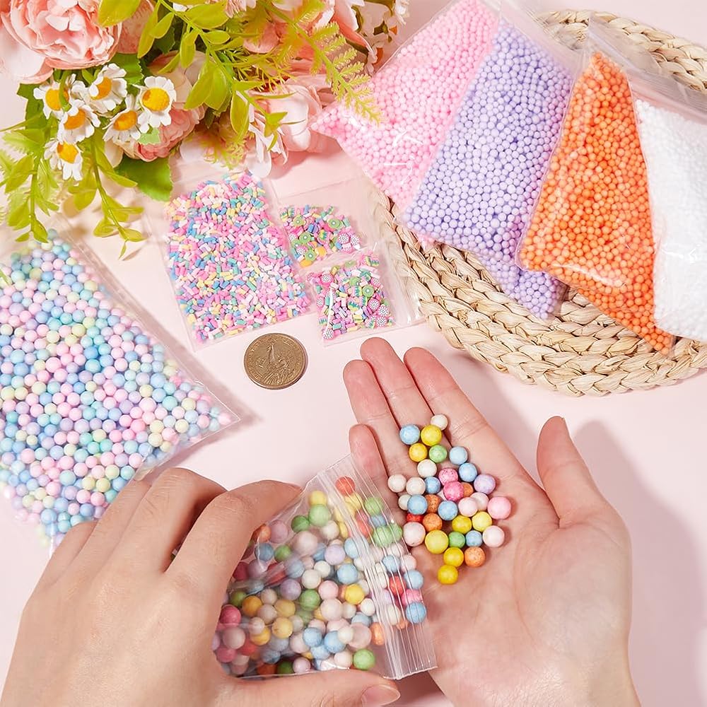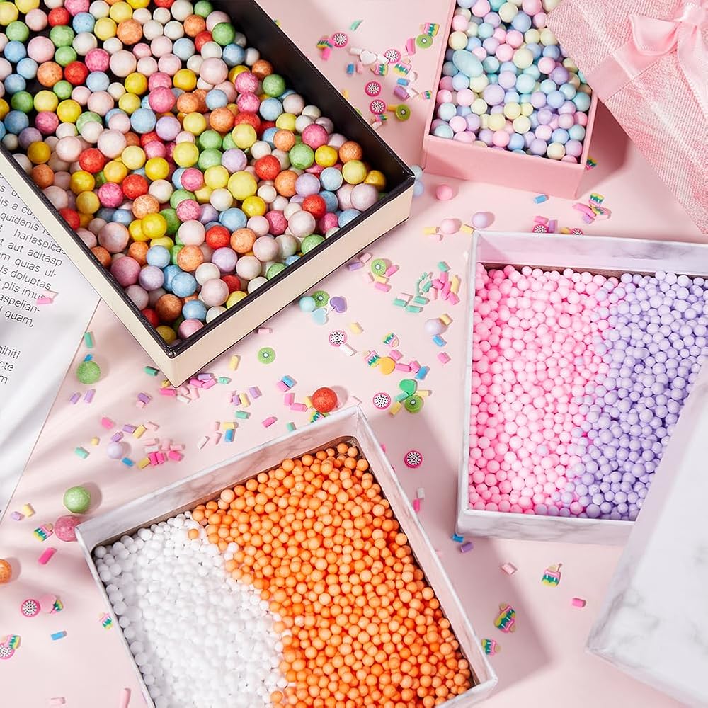 38G Foam Beads: The package contains 12g mini foam craft balls, 6g clay cabochons, and 20g clay sprinkle beads, totaling 38g, with a wide variety of quantities and styles. It can not only be used as a filling material, but also as a decorative prop