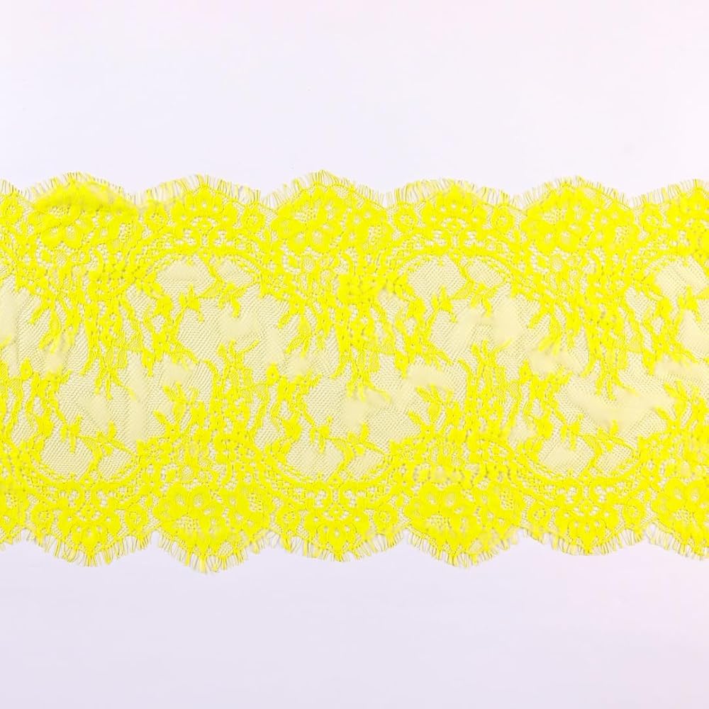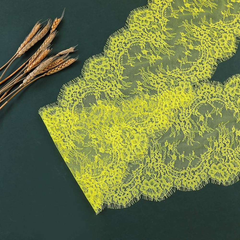 9 Inch Wide by 3 Yard Lace Ribbon Trim Floral Pattern Embroidered French Eyelash Colored Lace Fabric Material for Clothes Bridal Wedding Dress Sewing Home Decoration,Lemon