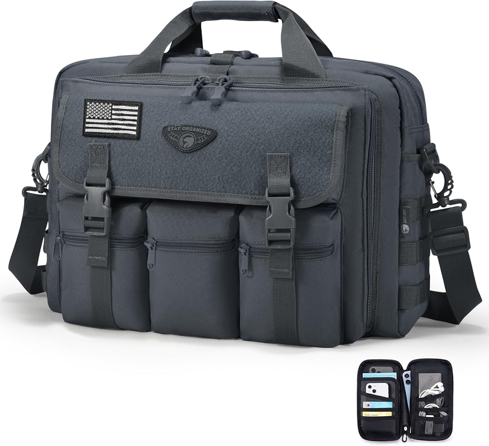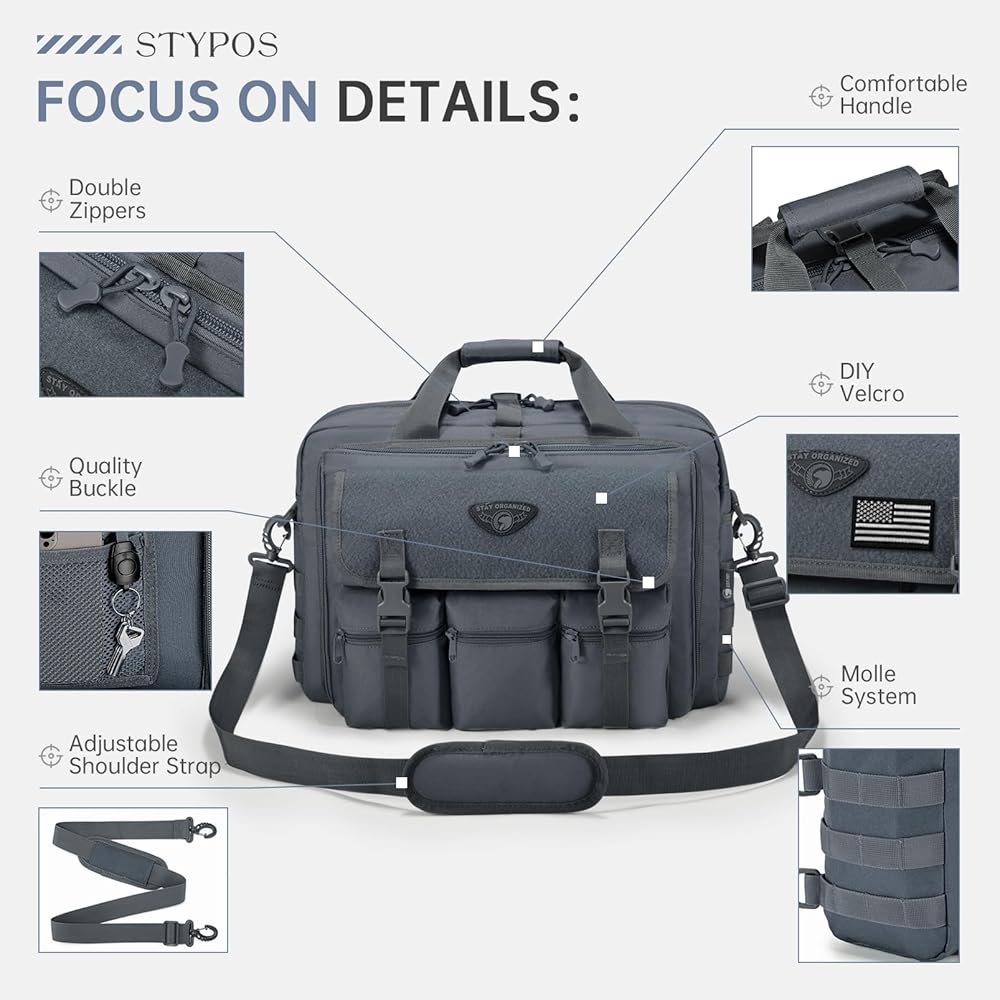 【Multiple Carrying Styles】Equipped with a detachable and adjustable shoulder strap (length 27.5-47.2 inches / 70-120cm) and a top handle. Tactical briefcases can be used as handbags, shoulder bags, crossbody bags, and can also be hung on the suitcase to free your hands.