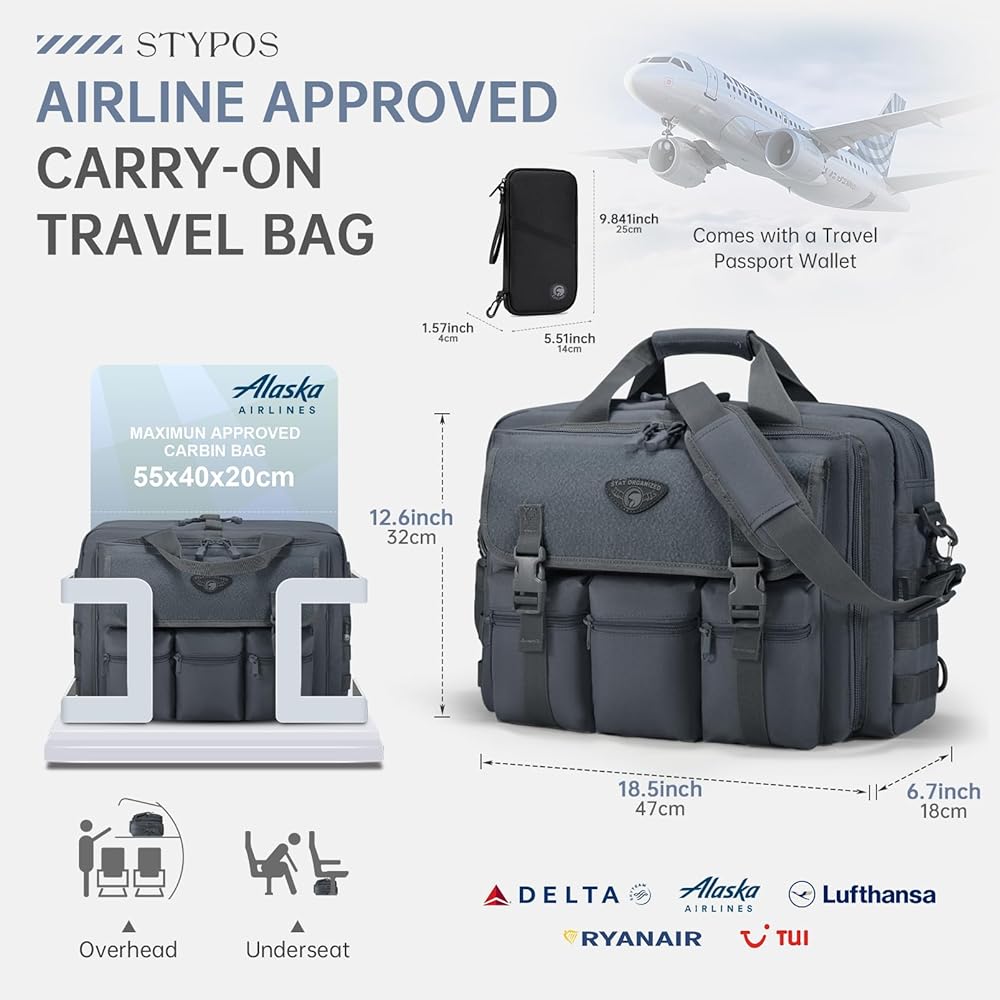 【Durable & Travel-Ready Design】Crafted from upgraded 800D Oxford fabric, this backpack is lightweight, waterproof, and built to last. Measuring 18.5x12.6x7 inches (47x32x18cm) with a 30L capacity, it meets carry-on size requirements for most airlines, making it perfect for business trips, travel, or outdoor adventures.