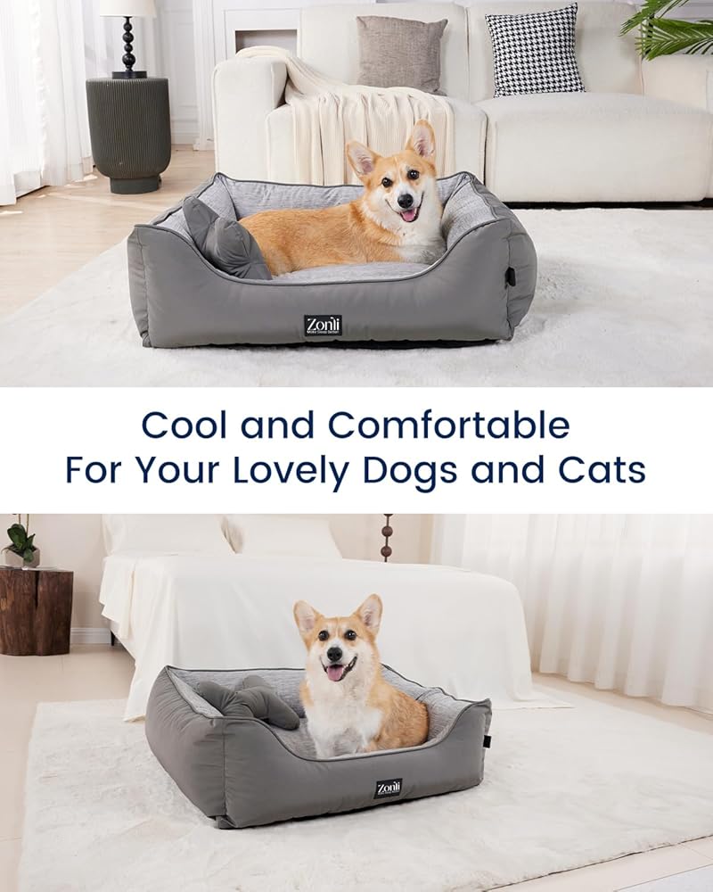 ZonLi Cooling Dog Bed, Dog Bed for Small Dogs & Cats, Dog Cooling Bed with Bolsters Waterproof, for Dogs Up to 15 lbs, Pet Bed with Washable Cover, Non-Slip Bottom, Without Gel, Arctic Grey