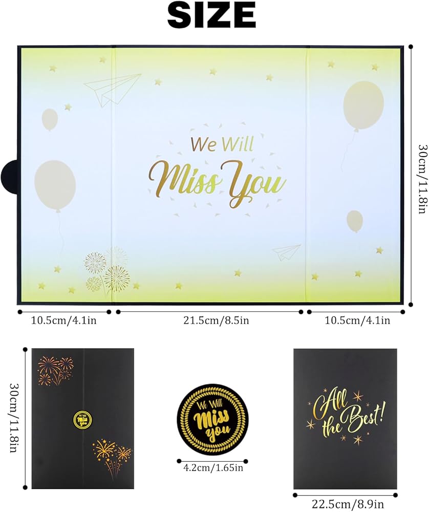 【Size】- The folded size of the farewell signing book is approximately 8.9 x 12 inches; The unfolded size is about 18 x 12 inches, perfect size for party decorations.