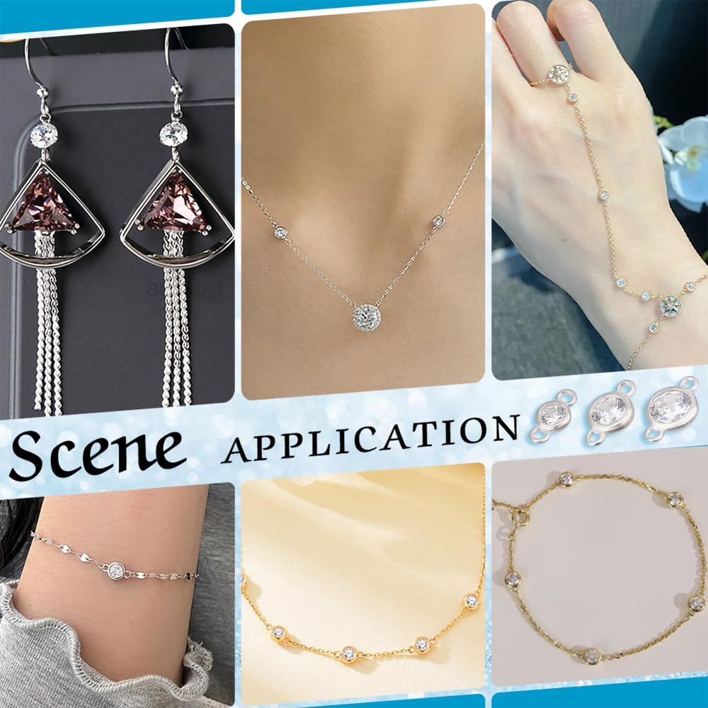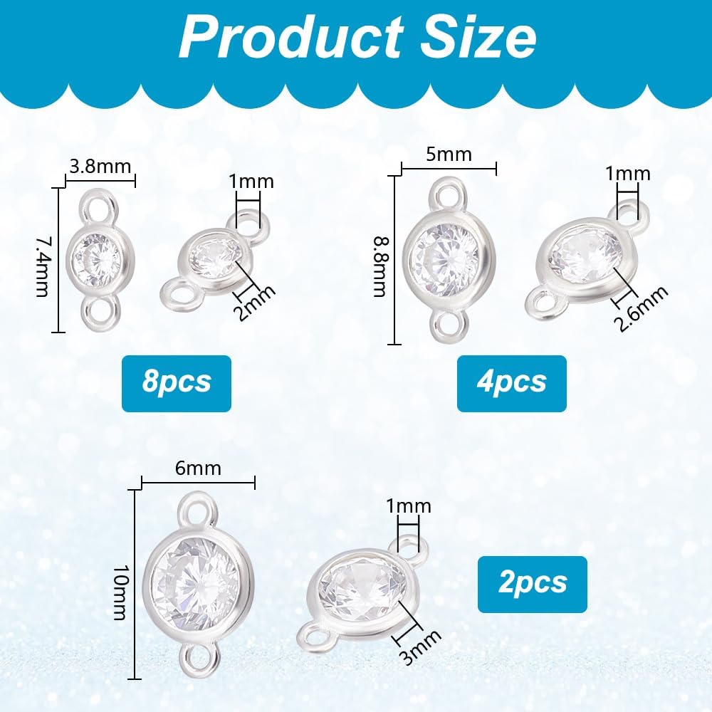Size and Quantity: This set includes 14pcs of 925 sterling silver clear cubic zirconia links in 3 different sizes--3.8x7.4mm (8 pieces), 8.8x5mm (4 pieces), and 10x6mm (2 pieces). Each link features a 1mm hole, with multiple sizes and a variety of options, this set is versatile for different creative projects