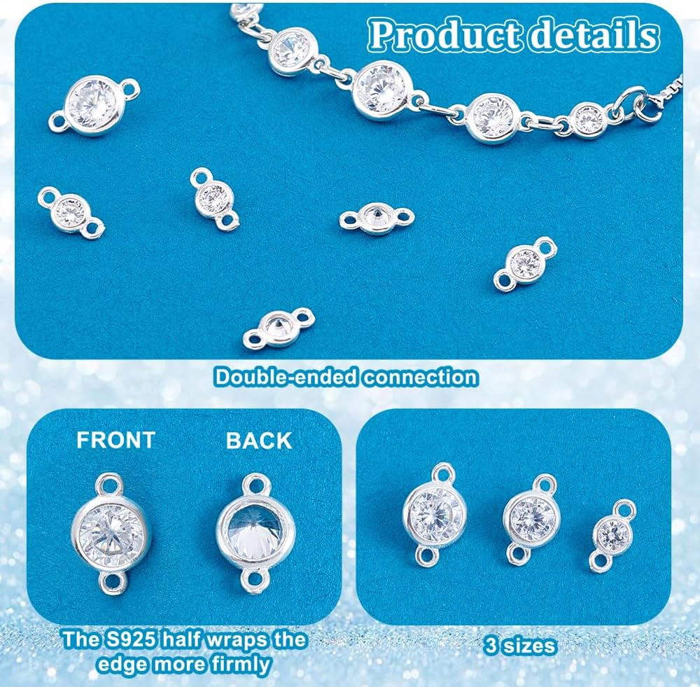 Fine Craftsmanship: Crafted from high-quality 925 sterling silver, these links are polished to perfection, offering durability and a shiny, sleek finish. The clear cubic zirconia stones adds an elegant sparkle to your jewelry creations, making them perfect for daily wear or special occasions
