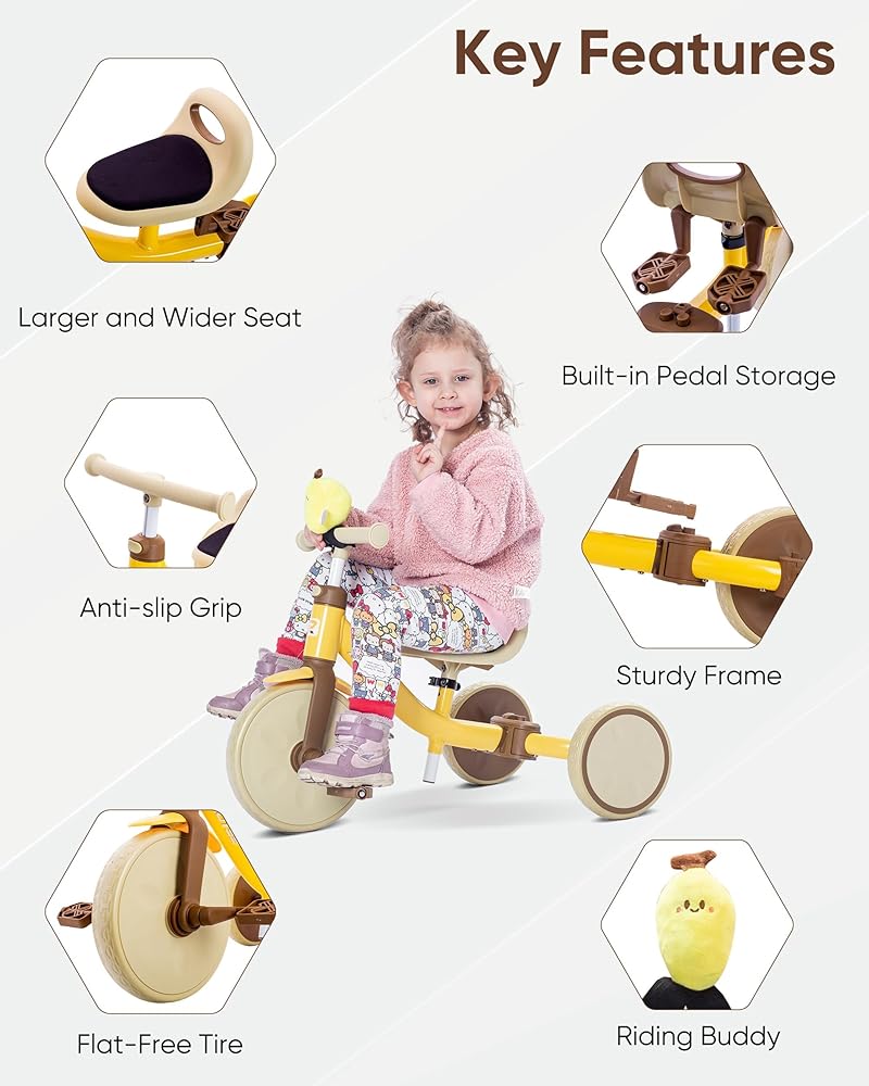 Smart Pedal Storage for Seamless Transitions - No more misplaced parts! The removable pedals conveniently tuck into a built-in storage slot under the seat—keeping everything neat, secure, and ready to go. Quickly switch between trike, balance bike, or walker mode without losing a thing.