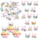 Perfect for happy easter theme party, bunny ears theme party, rabbit ears theme party, baby shower theme party, bunny birthday theme party cupcake decorations supplies.