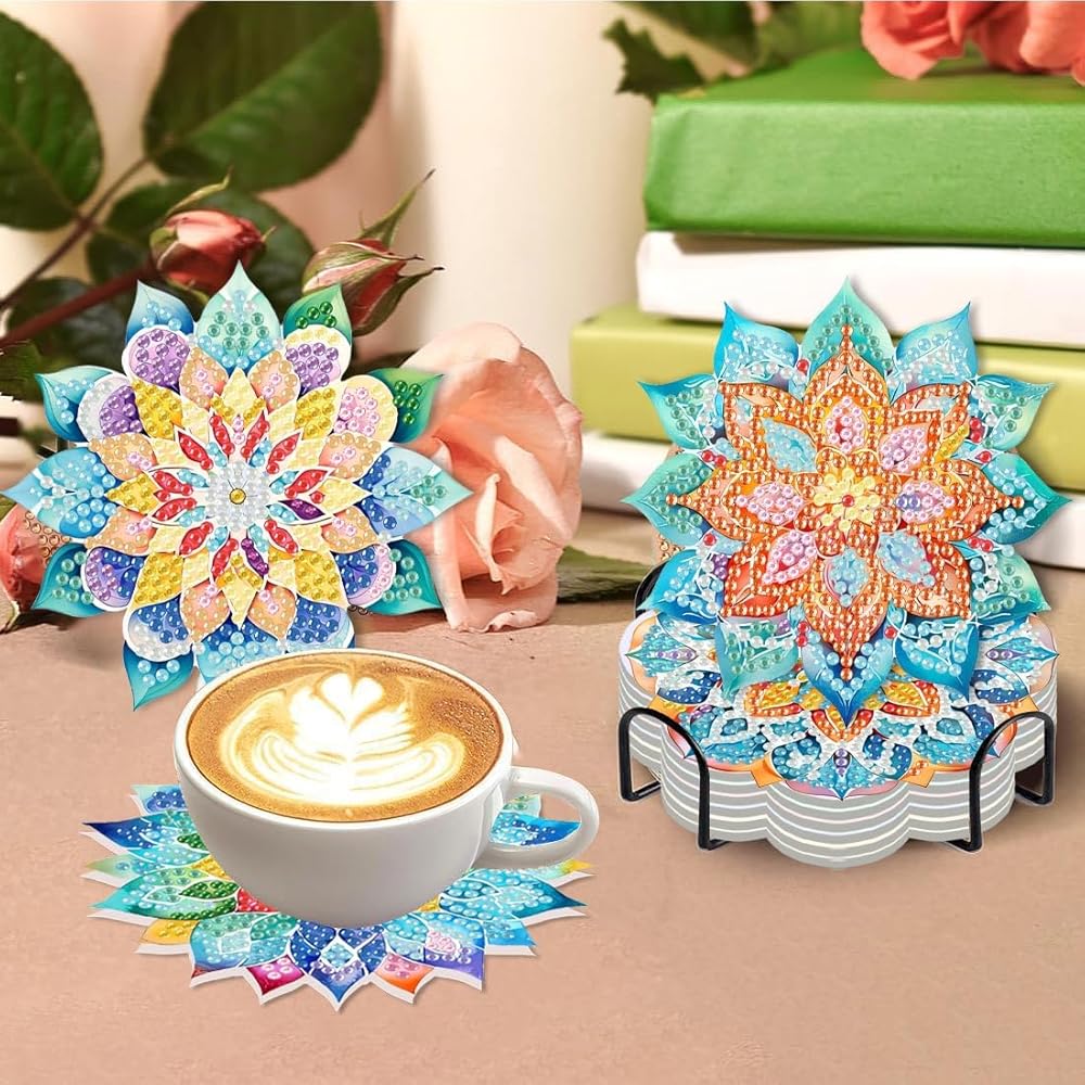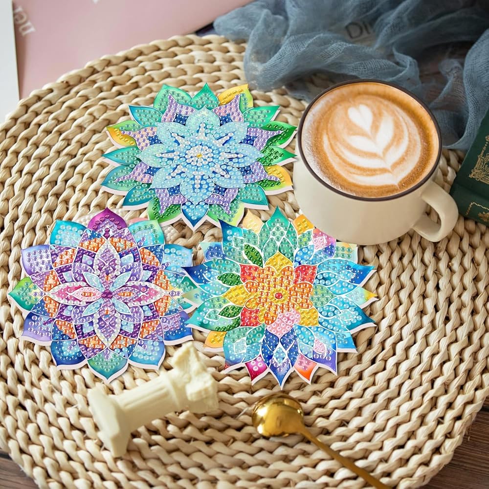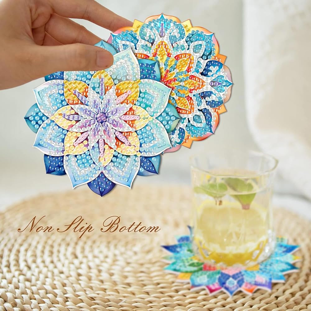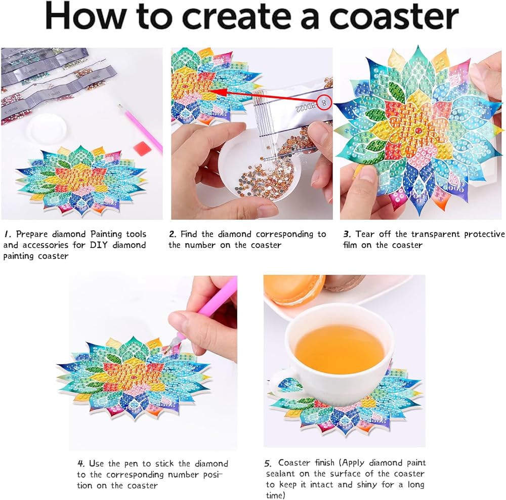 【High Quality Material】: Our flowers diamond art coasters are made from acrylic acid with reliable quality. The patterns are well painted so that those numbers and patterns can be seen clearly. Besides, the material is of great attachment that makes diamonds stick on the coasters firmly without falling.