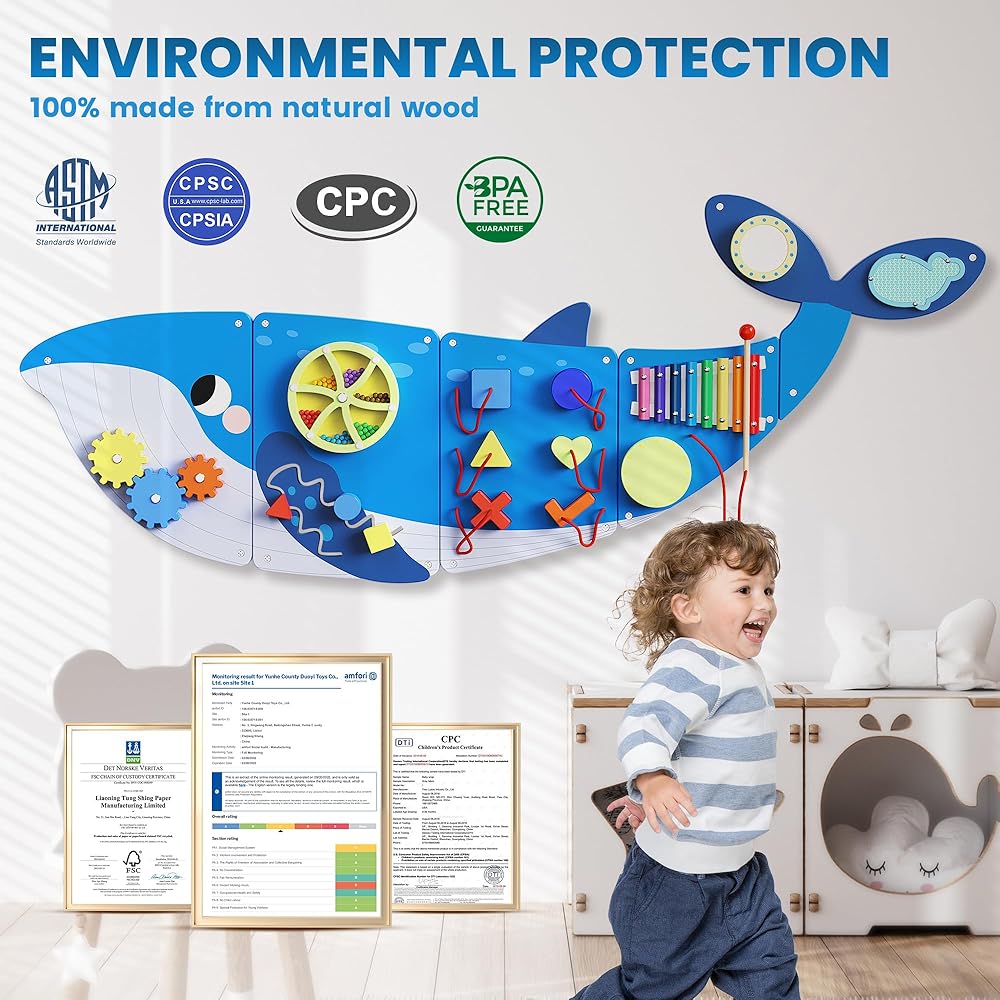 Sustainable and Friendly: The BlueWood montessori climbing set is made from FSC-certified natural wood with a safe water-based finish. It meets several international standard certifications such as CCPSA, CE, CPC, ASTM F963-17 and CPSIA testing standards