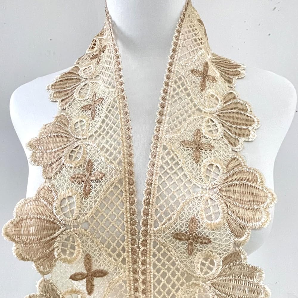 Lmlliang 5Yards 16.5cm Lace Trim Ribbon,Wide Embroidery Inelastic Sewing Lace Trim, for curtain sofa Sewing Making,Hemline Lace Home Decoration and Bridal Wedding Decorations(Beige)