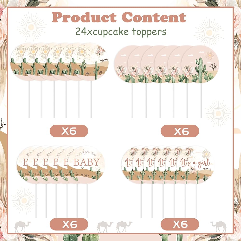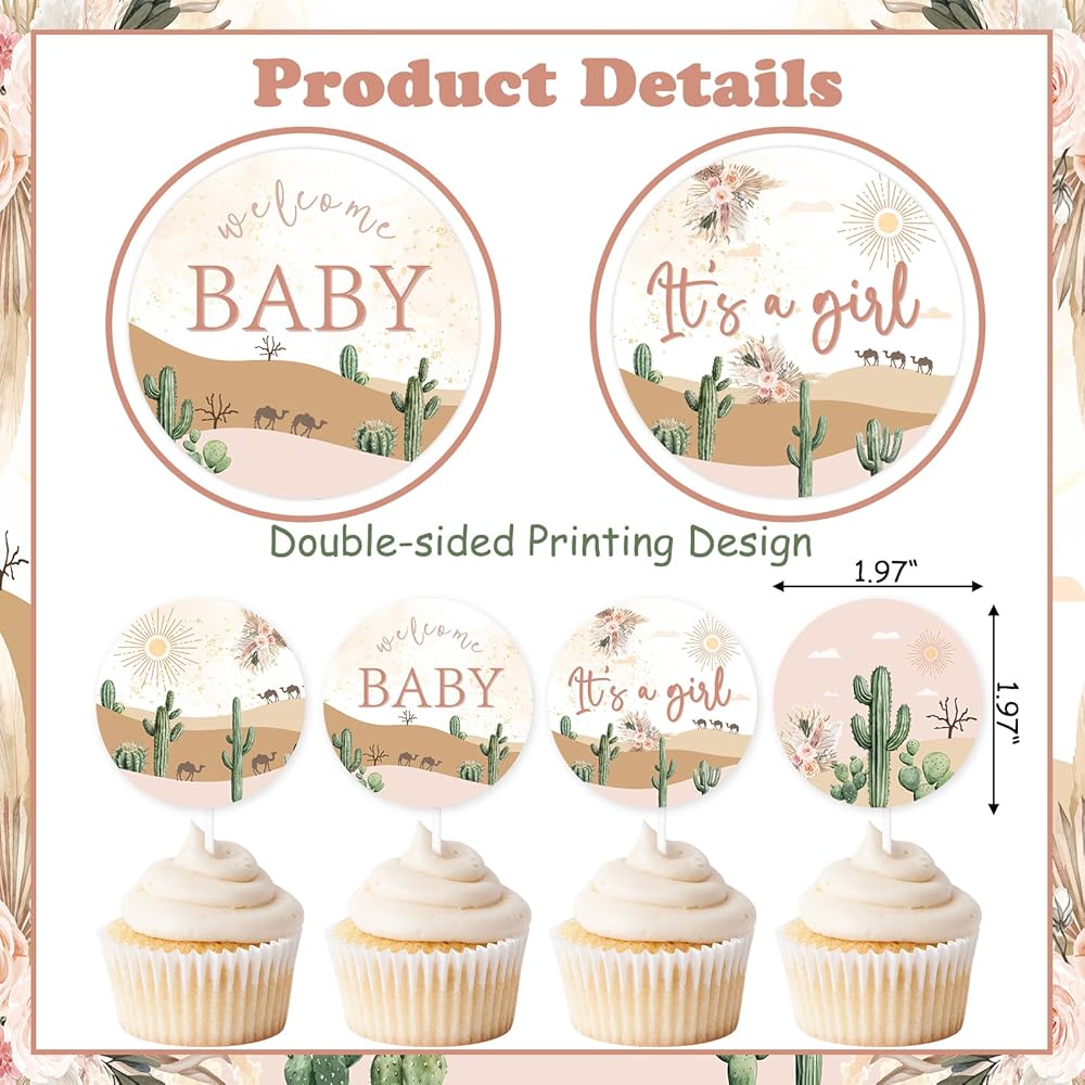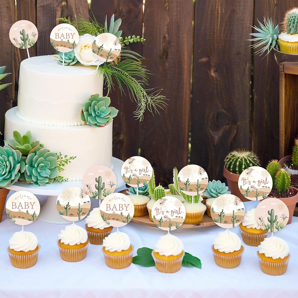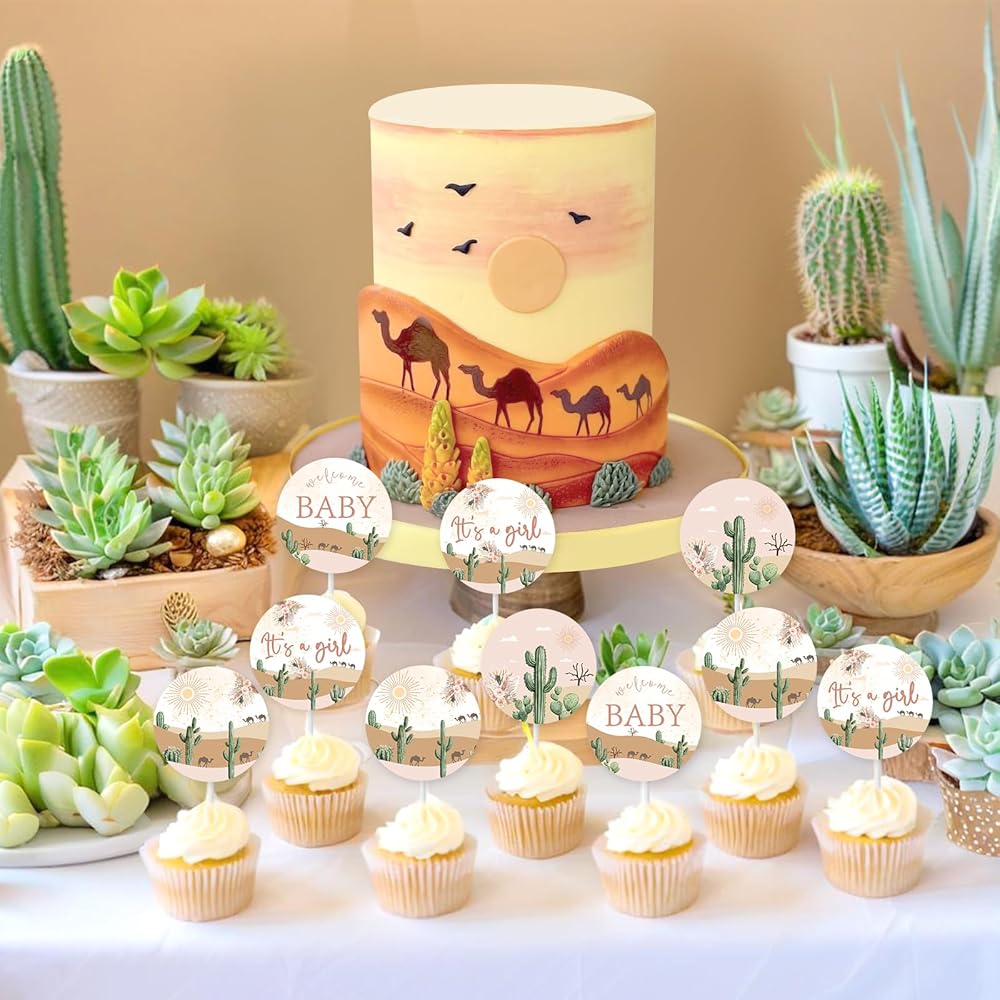 Suitable for All Occasions: Desert cupcake toppers are perfect for desert baby shower, cactus baby shower, cowboy baby shower, horse party, sweet little one baby shower,adventure awaits baby shower,western birthday party, gender neutral party, wedding party, etc.