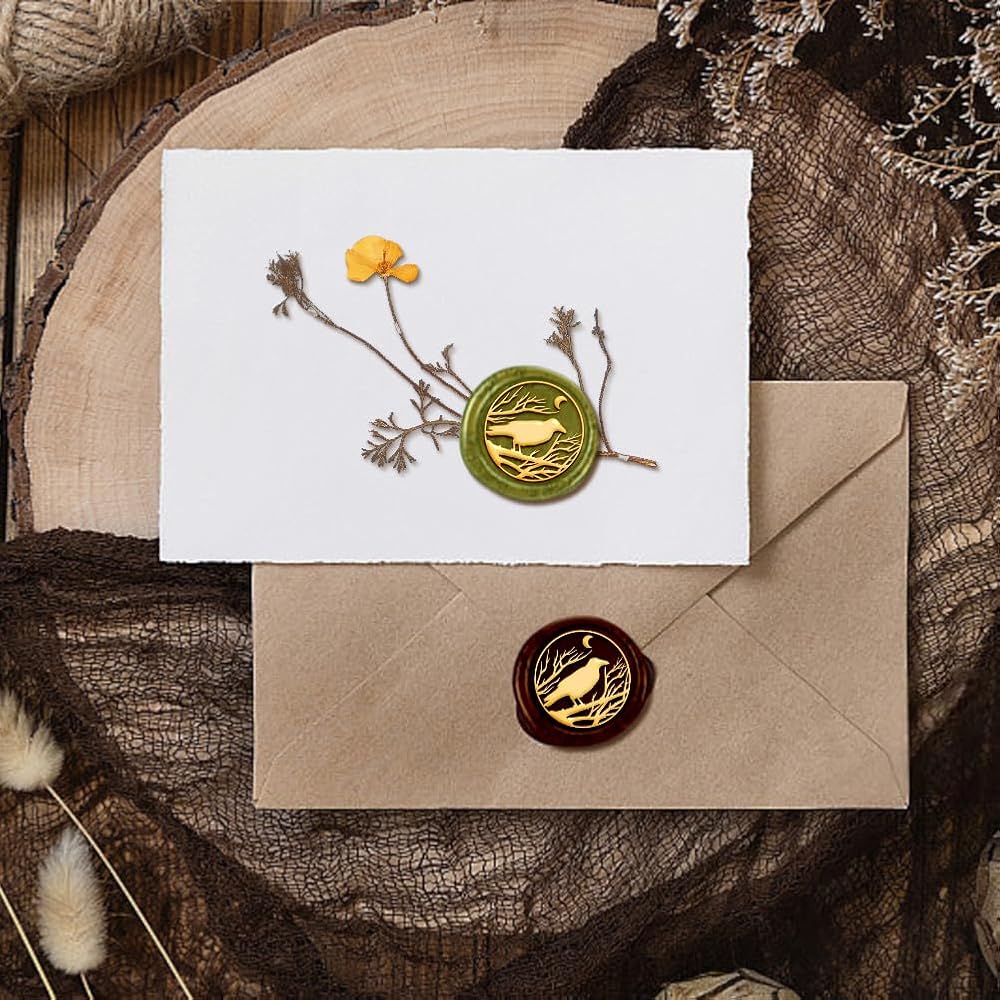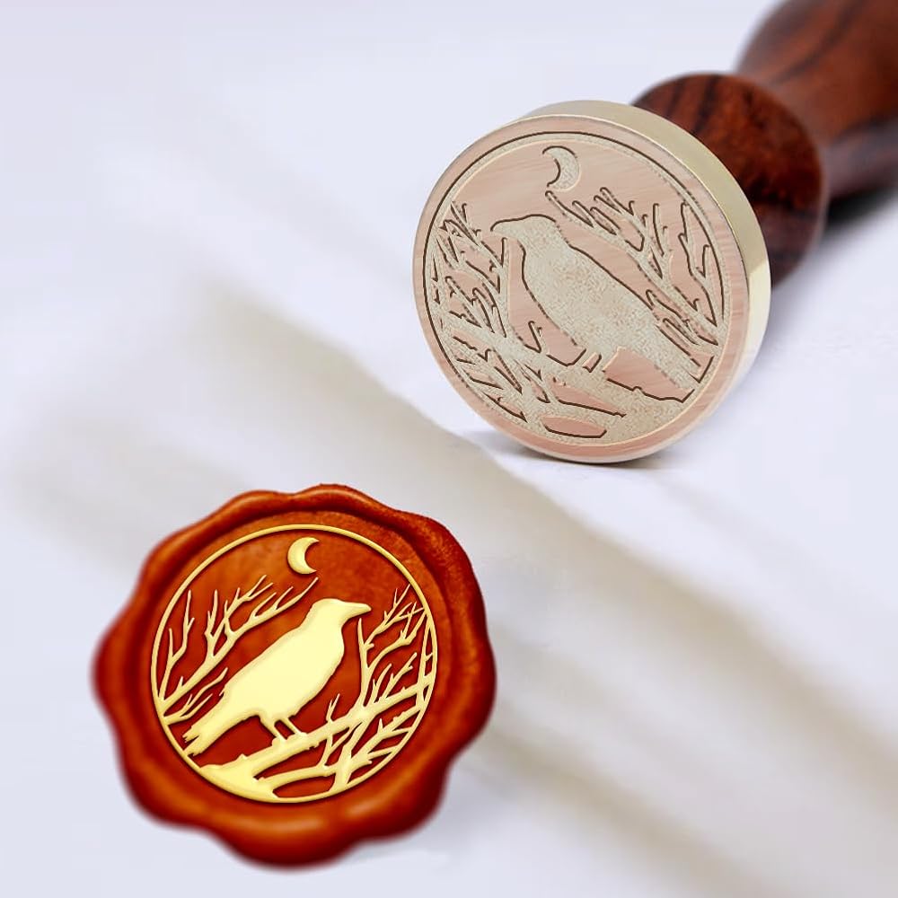 Raven Design: The wax seal stamp pattern is a raven standing on a tree branch in the moonlight, which is a classic Halloween element. The pattern is clear, well made, can intact show the details, suitable for DIY.
