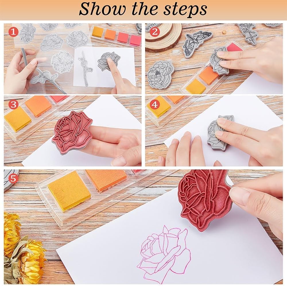 Easy Operation: Peel the stamp from the transparent paper, stick it on your finger, select the ink pad you like (not included), and then print the dyed stamps on the handicrafts you need to decorate, and dry them to get a beautiful work.