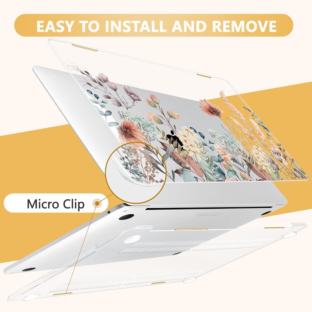 Full Set of Accessories, Easy Installation: The package includes a protective case for the 13.3-inch MacBook Pro, a keyboard cover, a screen protector, 2 webcam covers, and a Type-C adapter, offering complete protection. The micro-clips make installation and removal quick and easy, ensuring a secure fit while allowing convenient removal