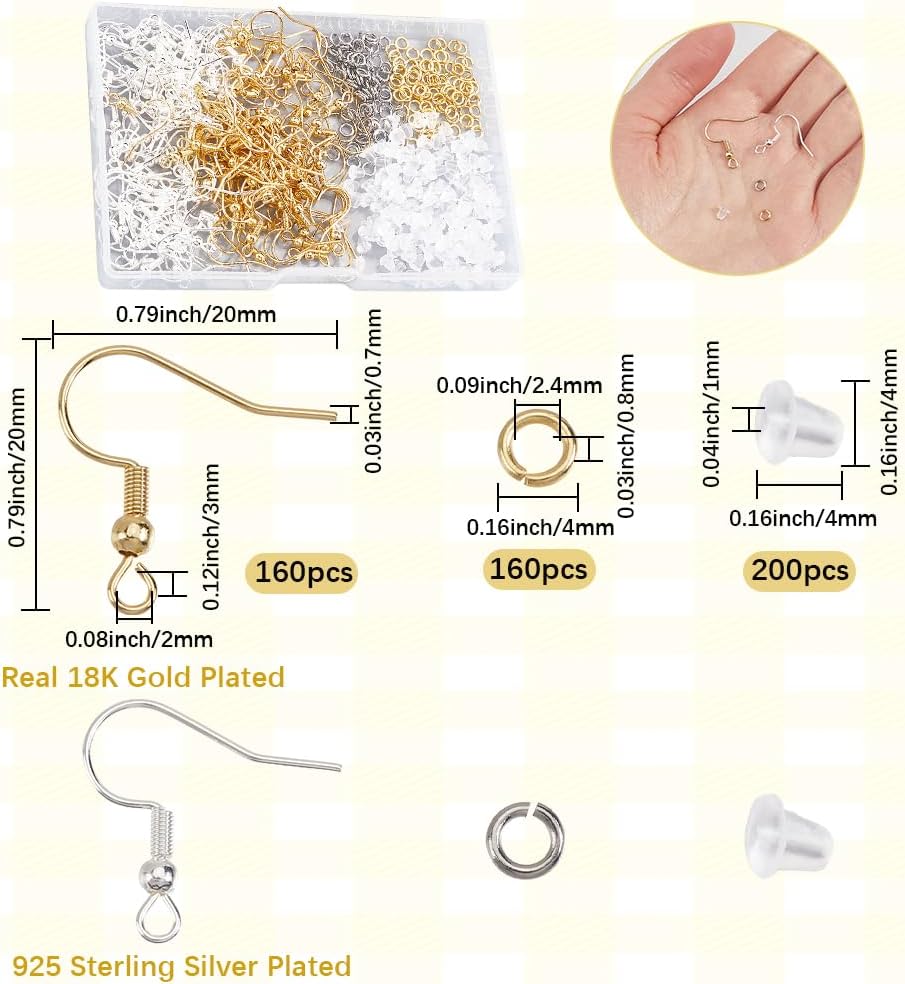 1 Box 160 Sets Ear Wires: The plastic box contains 160pcs french earring wires, 160pcs jump rings and 200pcs ear nuts, so you don't have to buy extra. The sufficient quantity can meet your different needs, making it very suitable for manual diy production