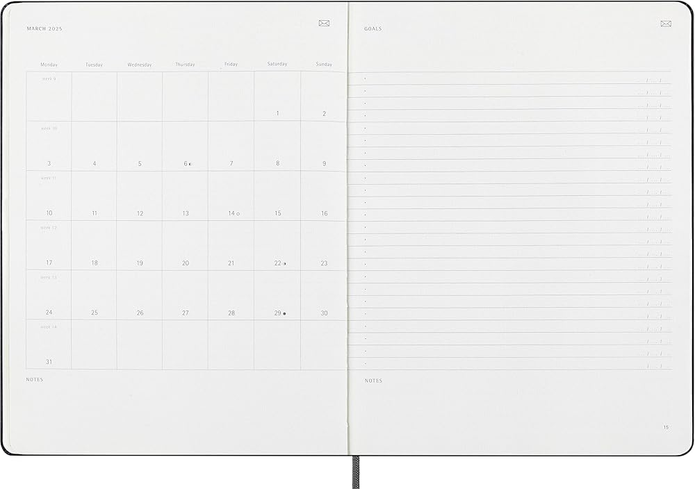 - Useful tools: calendar, travel planning, ideas and goals, ruled pages for notes