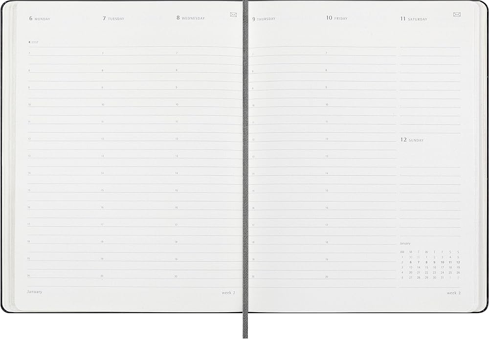 Get organized with the 12-Month PRO Weekly Vertical Diary/Planner. Dated from January to December, it shows the week across 2 pages with space each week for project planning, notes and tasks. Stay on top of your workload with pages dedicated to yearly goals, monthly and weekly projects, as well as detachable pages and to-do lists.