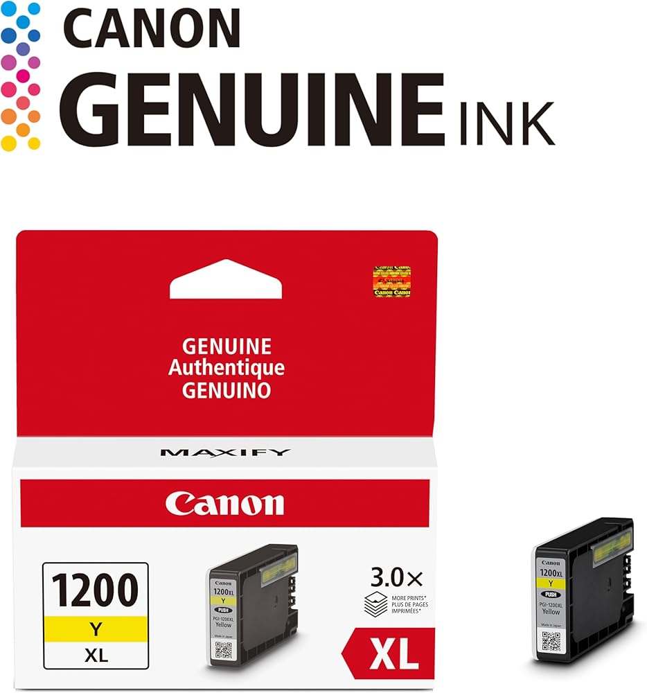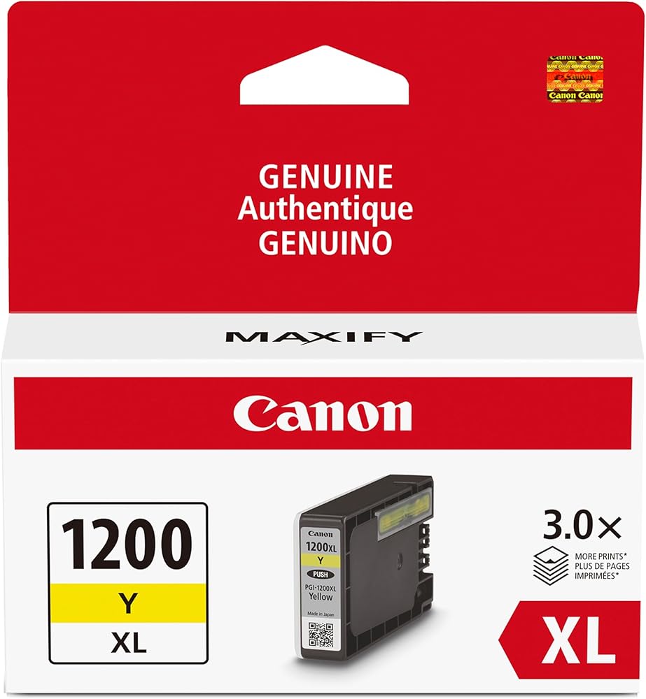 Canon PGI-1200XL Genuine Yellow Ink Tank, Compatible with MB2120, MB2720, B2020, and MB2320 (Optional) Printers