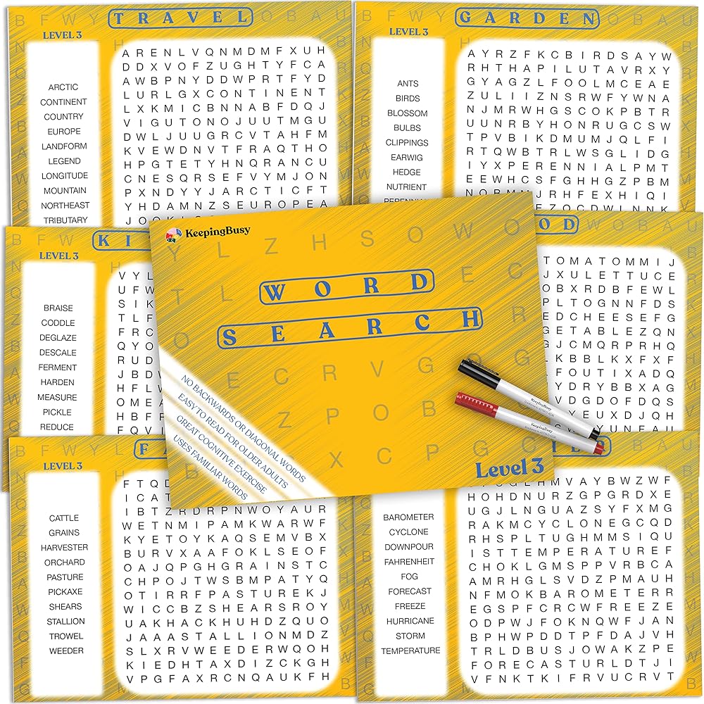 EASY GAMES GOR SENIORS WITH DEMENTIA : No need for struggle! Each of these senior care games for dementia patients uses simple words to help maintain interest and stimulation. There are no hidden diagonal or backward words, helping to ensure that success is achievable without the potential frustrations.