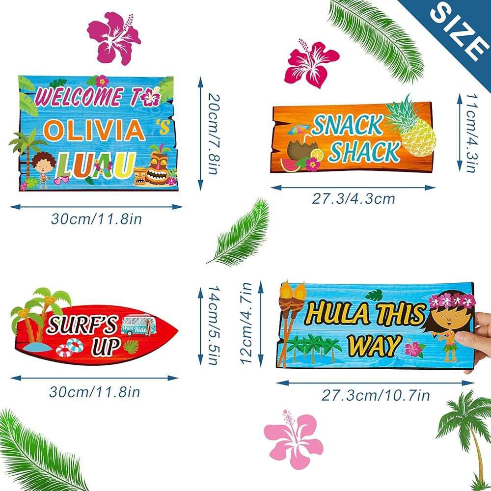 The welcome directional sign are printed with assorted pool party theme signs, like drink bar, swim, watermelon etc., the words in big fonts are easy and clear for you to notice and read; Featured with bright color and cute pattern, which well adorn your house and convey the pleasant festive atmosphere effectively.