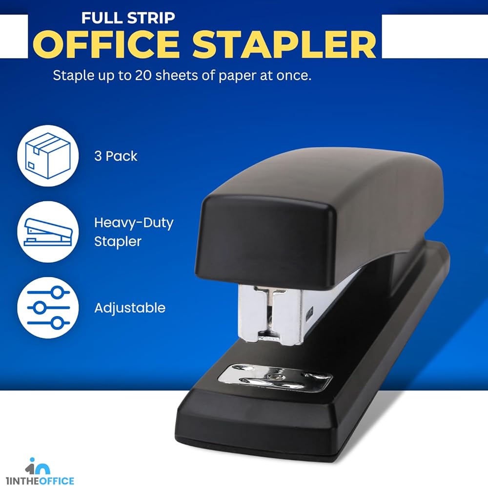 Package of three office staplers is ideal for frequent use, as it can staple up to 20 sheets of paper at once. It provides a convenient way to staple larger documents together.