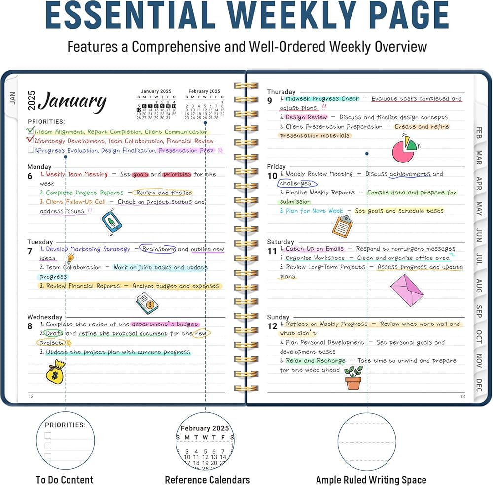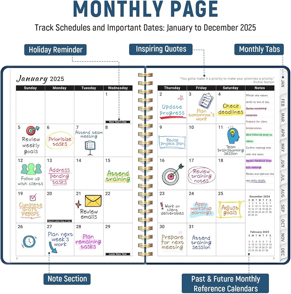 Versatile for All: Perfect for students, teachers, professionals, and homemakers alike, this 2025 planner meets the diverse needs of any busy individual. Use it to manage school assignments, work projects, family events, and personal goals—all in one convenient place.
