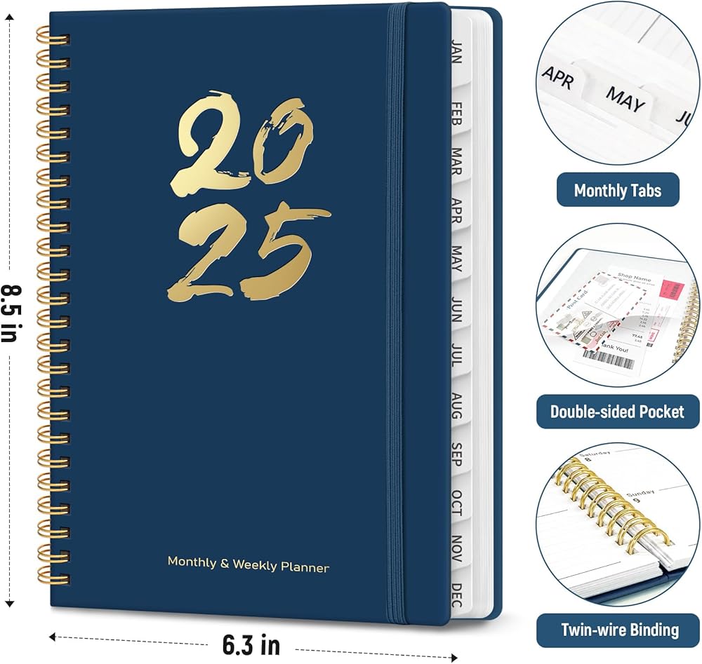 2025 Planner - Weekly and Monthly Planner, January 2025 to December 2025, Spiral Bound 2025 Calendar Planner Book, Inner Pocket, Perfect for Office Home School Supplies - A5 (6.3" x 8.5"), Navy