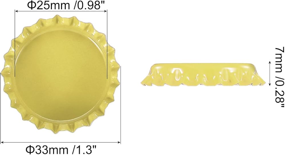 Color: Pink; Material: Tinplate; Overall Dimensions: 33 x 7 mm / 1.3 x 0.28 inch (Dia*H); Bottom Inner Diameter: 25 mm / 0.98 inch; Packing List: 100 Pieces of Bottle Caps for Crafts
