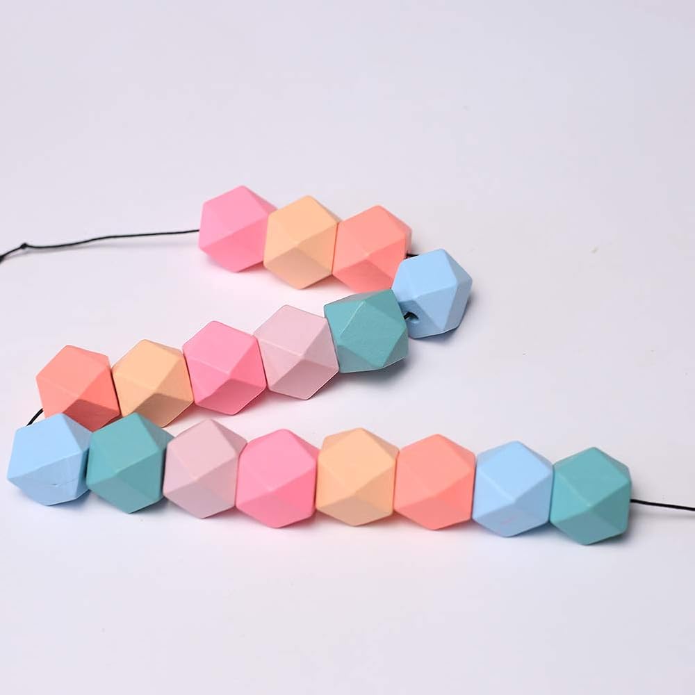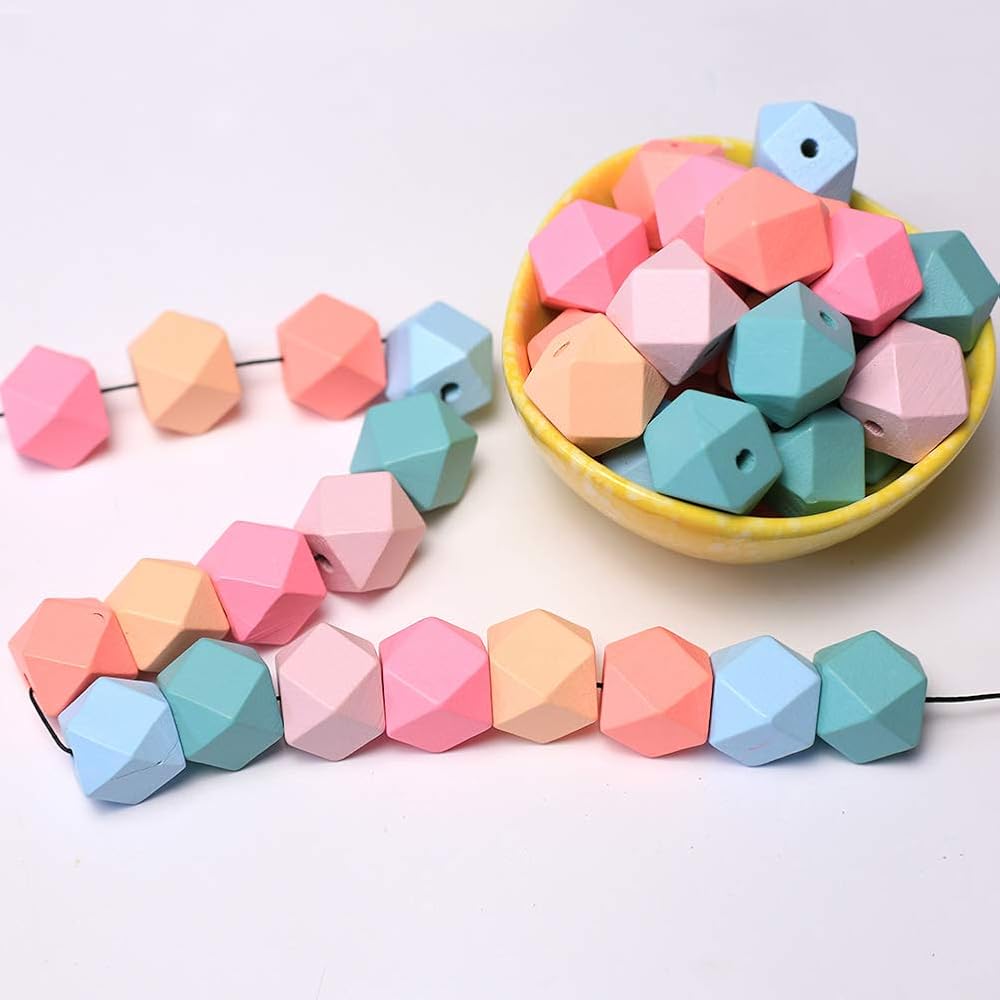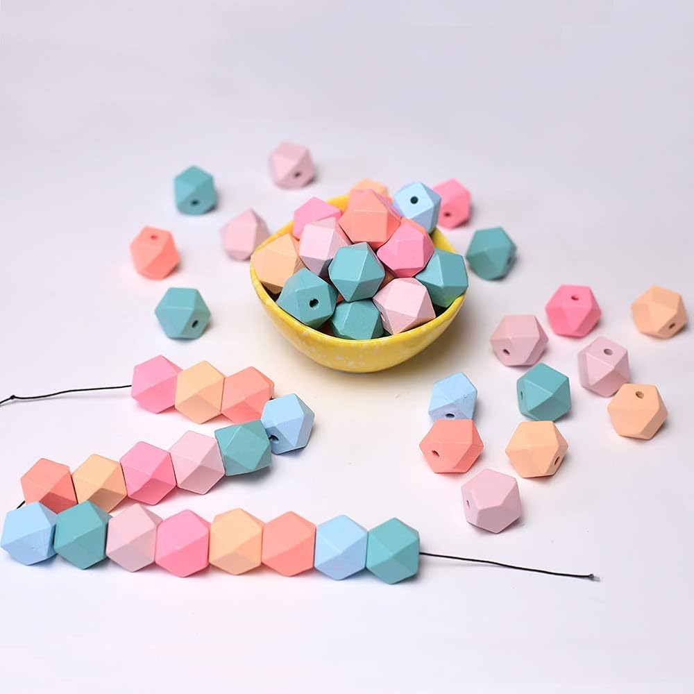 - [Package Contents]:70 Piece of geometric faceted candy wooden beads