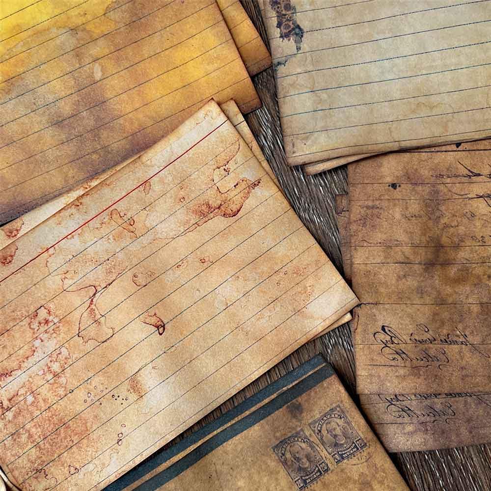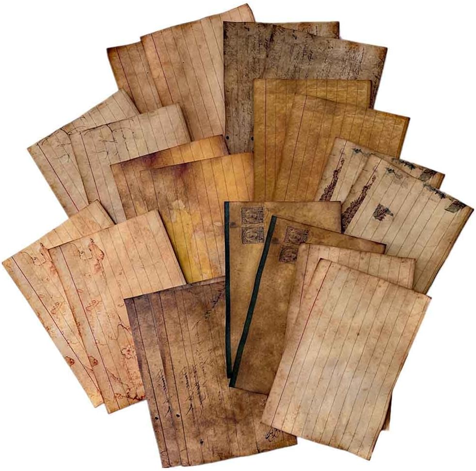 Vilikya 20Pcs Hand-Dyed Mottled Junk Journal Paper for Scrapbook Supplies, Vintage Double-Sided Lined Writing Paper, Aged Book Pages for Scrapbooking, Journaling Kit, Collage Ephemera Stationery Decor