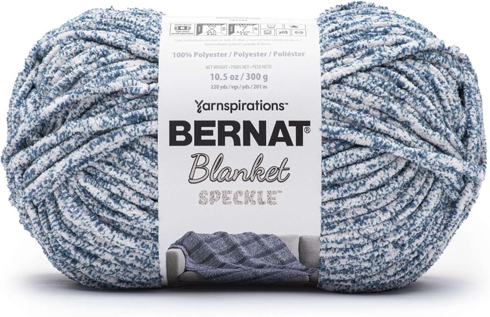 Speckled with droplets of colour. Features spots and speckles. • Content: 100% Polyester • Ball Size: 300 g / 10.5 oz, 201 meters / 220 yards • Care: Machine Wash in Cool Water Delicate Cycle • Gauge: #6 Super Bulky
