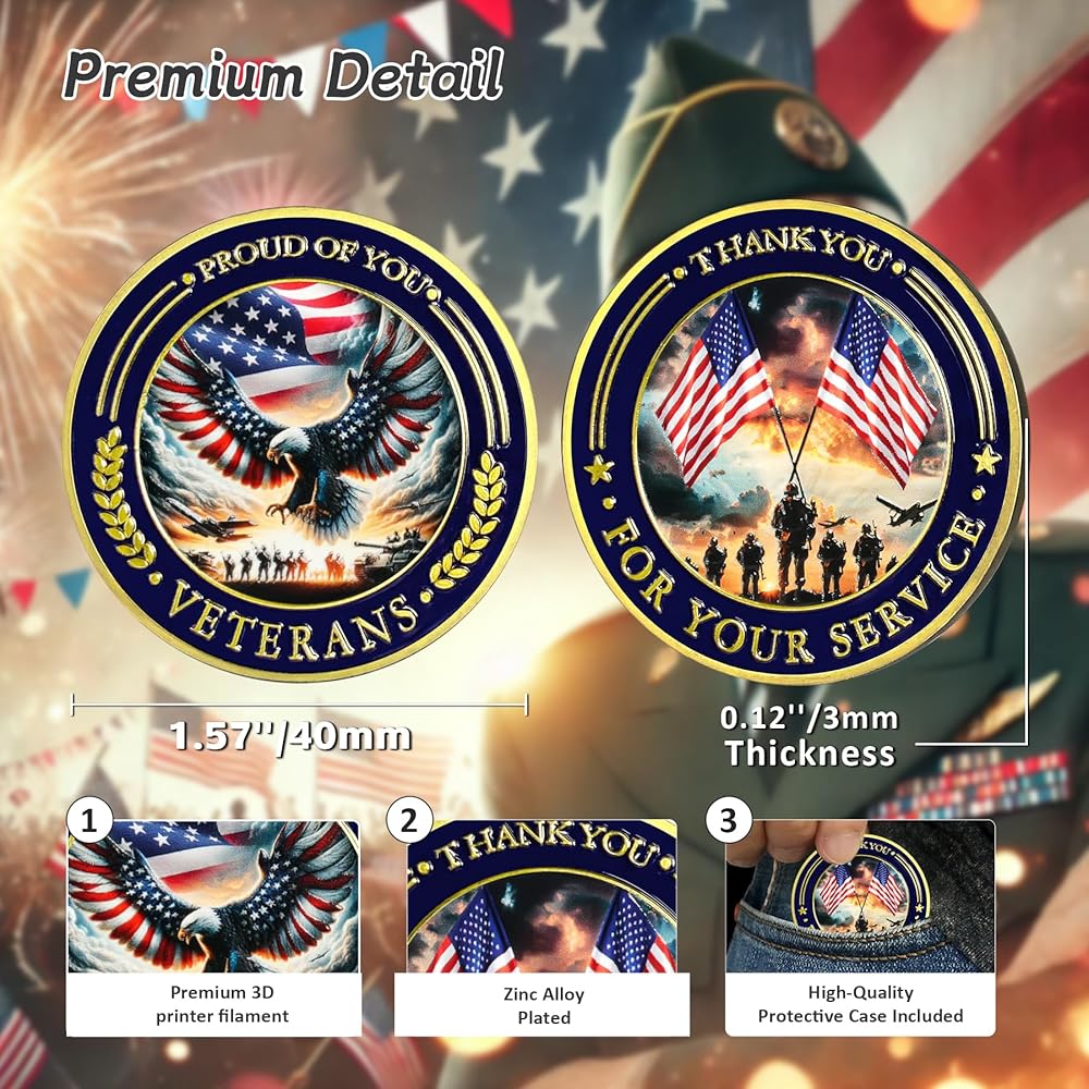 Ideal Present: This military coin serves as an appreciation present for Military Service Members & Patriots. It is a meaningful commemorative token of appreciation for those who have served or a reminder of the values of courage and sacrifice. Whether for personal use or as a thoughtful gifts, it holds significant emotional value.