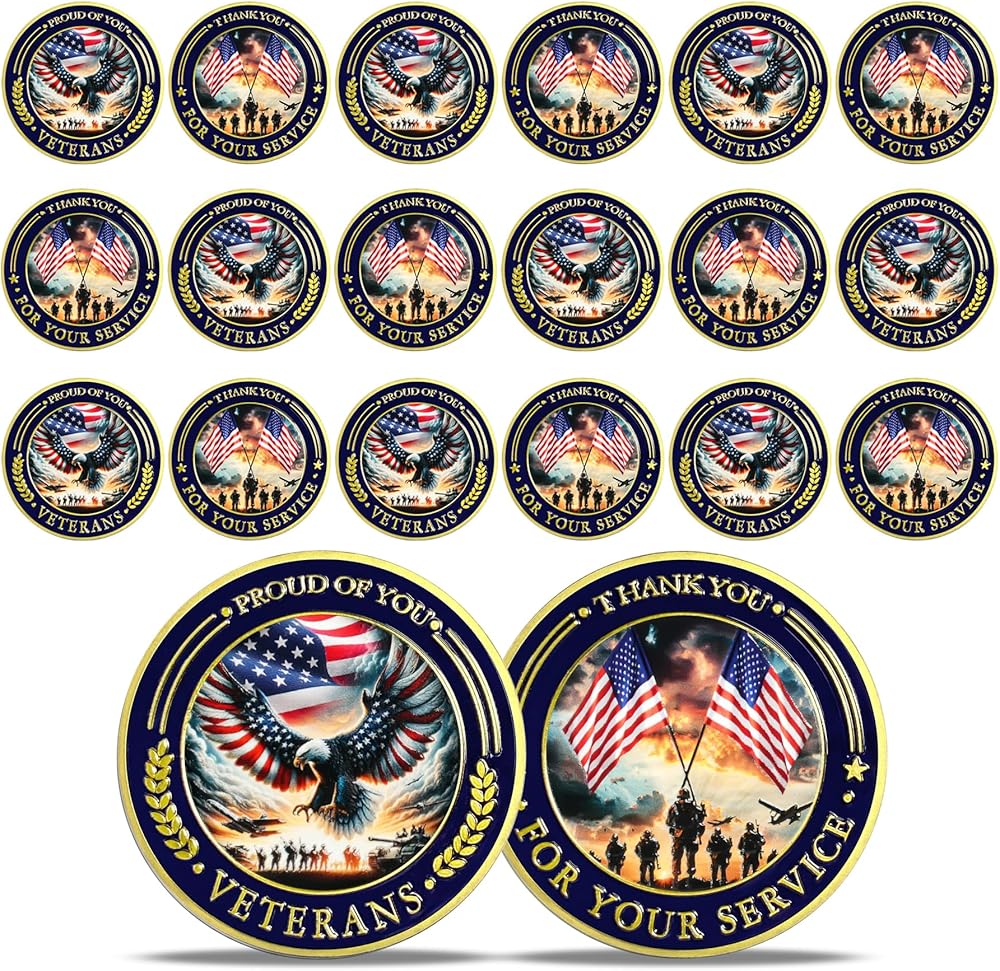 1Pcs Military Veterans Challenge Coin Bulk Eagle and Flag Thank You for Your Service Coin Appreciation Honoring All Veteran Gifts for Military Soldiers