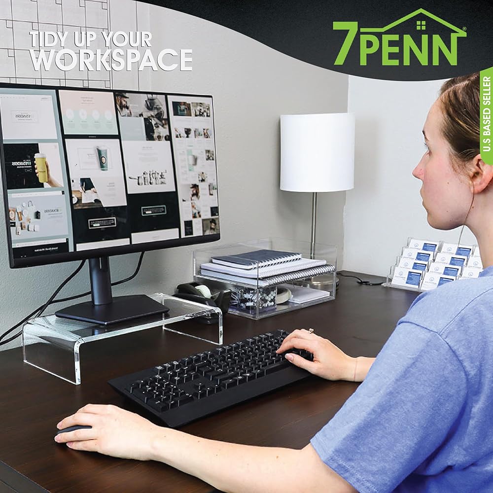 [Minimalist Design]: The Clear Acrylic Stand Riser from 7Penn provides a clean modern look that keeps you focused on your work