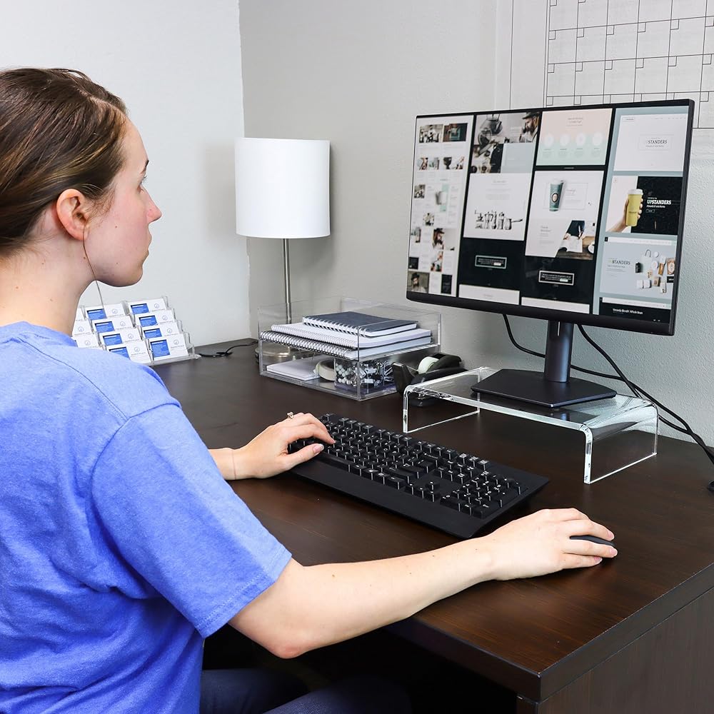 [Correct Posture]: Elevate your display screen to eye level with this 3.5in (8.89cm) acrylic riser to alleviate neck strain
