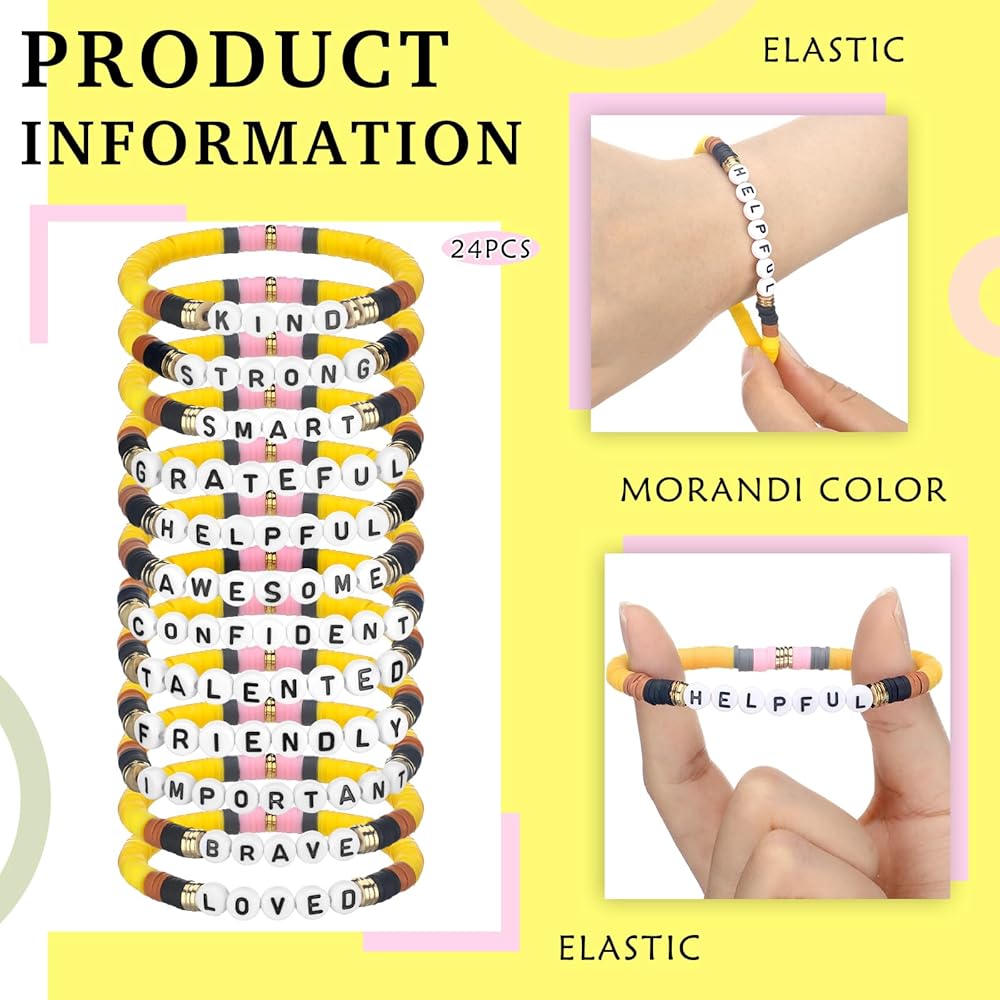 Beaded Bracelet Set: our set contains 24 end of year students bracelet, so it provides a wealth of choices, which can be matched with different outfits or given as gifts to students, and friends; It provides an unbeatable value proposition that you can't ignore