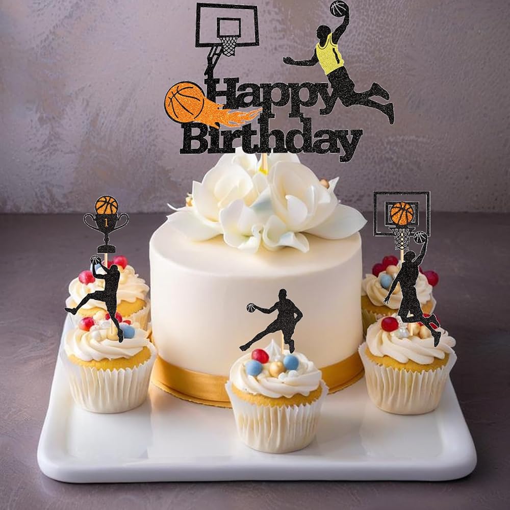 [PACKAGE INCLUDED]: 24PCS Basketball Slam Dunk Glitter Cupcake Topper, Personalized Design to Add Atmosphere to Your Party.